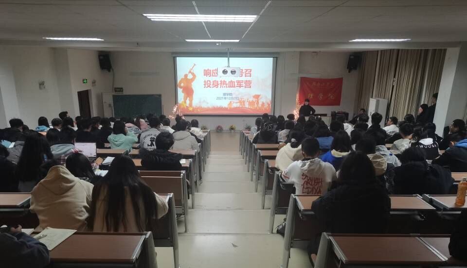 为进一步宣传国家关于大学生征兵入伍的相关政策,调动和激发大学生参军入伍的积极性,12月7日晚,我院在数理楼608开展了征兵讲座。理学院团学会全体成员和部分学生代表、意愿参军入伍的同学参加了讲座,讲座由旷惠琦老师主讲。