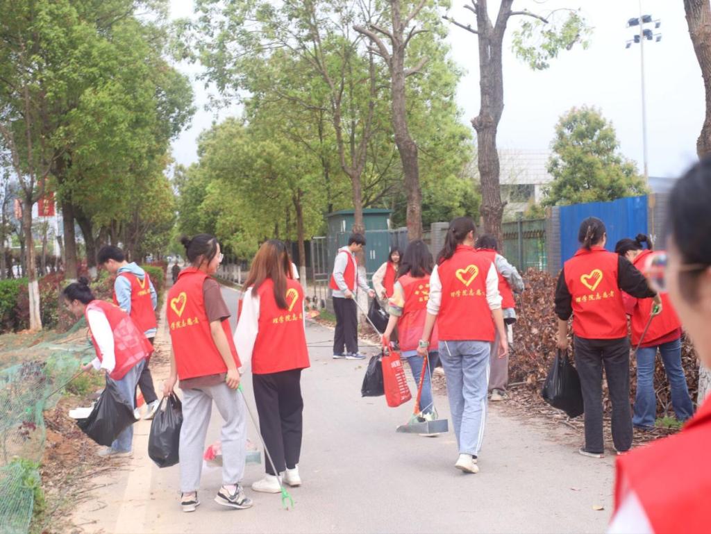 为深化学习贯彻习近平总书记关于志愿服务的指示精神,强化学生的社会责任感和公共服务意识,推进劳动教育,持续美化衡阳,2023年4月2日理学院青年大学生组织开展了以“弘扬志愿服务精神,让文明之花尽情绽放”为主题的清泉山社区志愿服务活动。