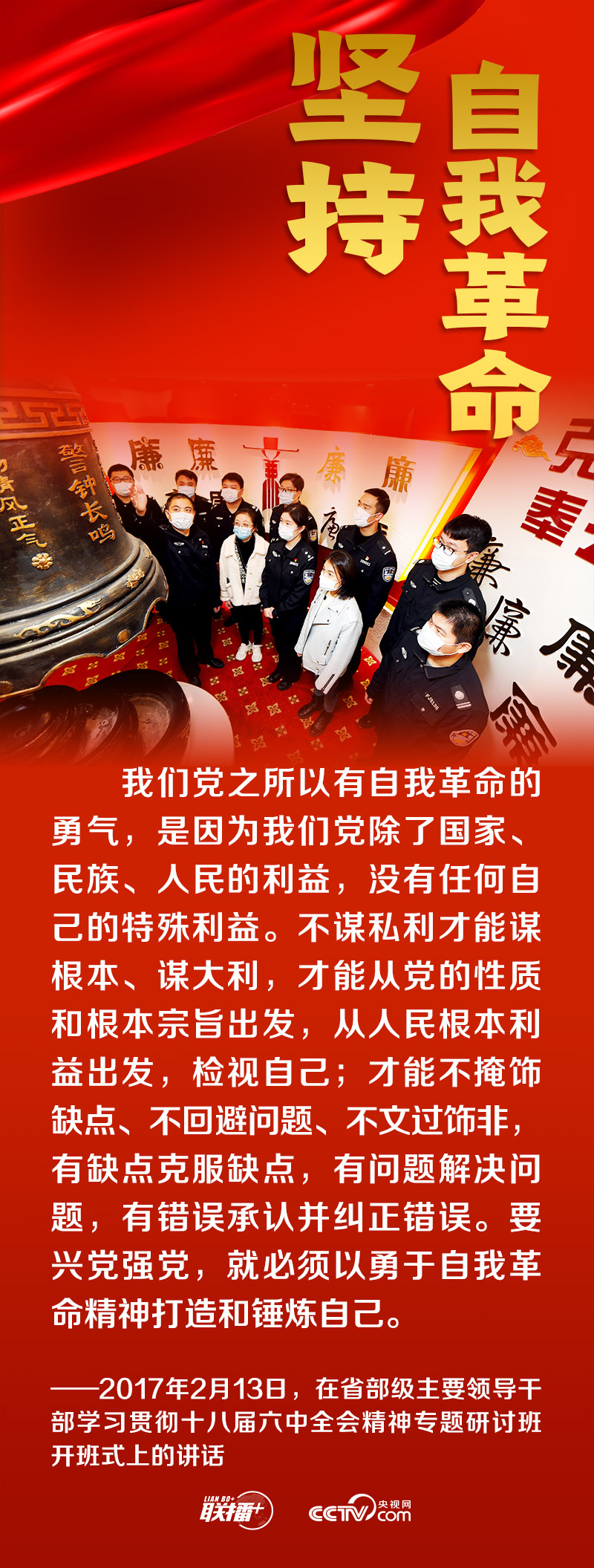 “勇于自我革命,是我们党最鲜明的品格,也是我们党最大的优势。”