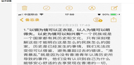《中国近现代史纲要》的任课老师在线上发布了“近代以来的几次大型瘟疫”肆虐的历史事实,让学生认识到一百年后的今天和新时代的中国作为现代国家所具备的应对能力和动员能力。结合历史和现实资料,在网络教学互动中,让学生谈谈中国特色社会主义制度、人员、物资等方面的优势,引导学生坚定四个自信,早日成长成才。