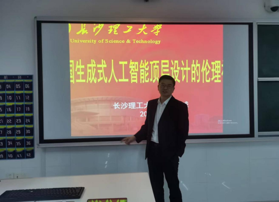此外,10月31日上午,陈万球教授还为马克思主义学院全体教师带来了一场题为《我国生成式人工智能顶层设计的伦理视界》的学术讲座,主要从问题提出:生成式人工智能凸显了“科林格里奇困境”,顶层设计:《生成式人工智能服务管理暂行办法》的破局之道,技术善治:生成式人工智能发展与治理的实践逻辑三个方面介绍了我国生成式人工智能的伦理问题。(文/图 周汇慧、徐茜 审稿人/一审:段锐 二审:伍小乐 三审:张冬毛)