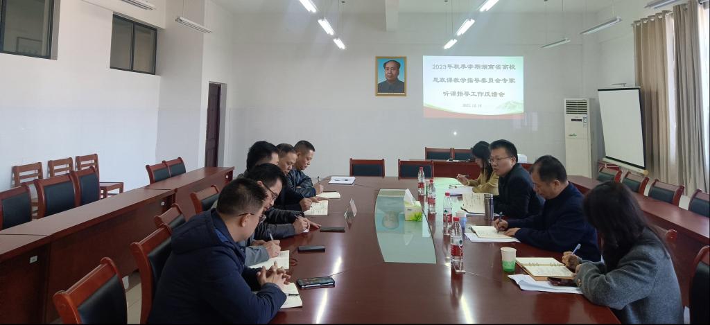12月14日,根据省教育厅的统一部署,湖南省高校思想政治理论课教指委专家南华大学黄秋生教授、湘南学院廖义军教授、湖南环境生物职业技术学院彭佩林主任一行来校开展听课和调研指导工作。