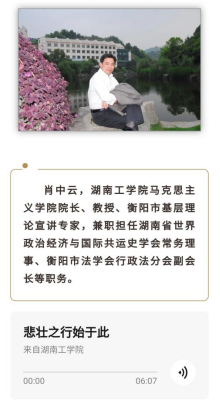 为迎接建党百年,马克思主义学院教师深挖湖南党史素材,组织开展“一颗红心永向党 红色故事我来讲”党史诵读宣讲活动,以在线朗读的形式,用声音带领师生重温峥嵘岁月,缅怀革命先烈,接受革命教育,以史树德、以史增智、以史践行,为学校即将召开的第三次党代会献礼,为全面开启的“十四五”新篇章贡献力量。