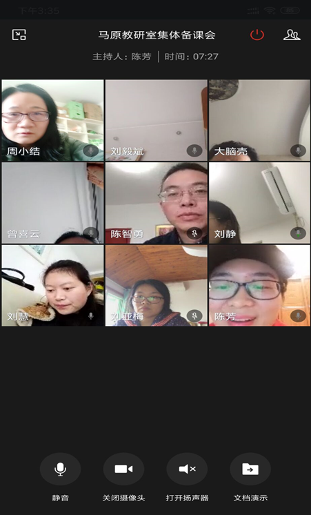 会上,教师们根据2月19日以开设思修》、《原理》、《纲要》三门思政课的第一阶段线上授课情况,提出了在线上教学过程中遇到的困惑,比如网络平台不稳定,影响课程进度;互动受限,无法体现教学相长;担忧学生的自主学习能力等。针对以上问题,教研室成员集思广益、讨论热烈。老师们还交流和共享了各自掌握的案例教学素材