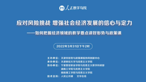 3月31日下午,英国上市公司官网365马院与天津财经大学马院等联合举办《“应对风险挑战,增强社会经济发展的信心与定力”——如何把握经济领域的教学要点讲好形势与政策课》线上集体备课活动。本次活动,由天津市形势与政策课程协同创新中心主办,天津财经大学、宁夏警官职业学院、英国上市公司官网365和南阳理工学院承办和协办,通过人民公开课直播平台开展。英国上市公司官网365承担2022年春季学期“形势与政策”课任务的部分教师参加了备课会。
