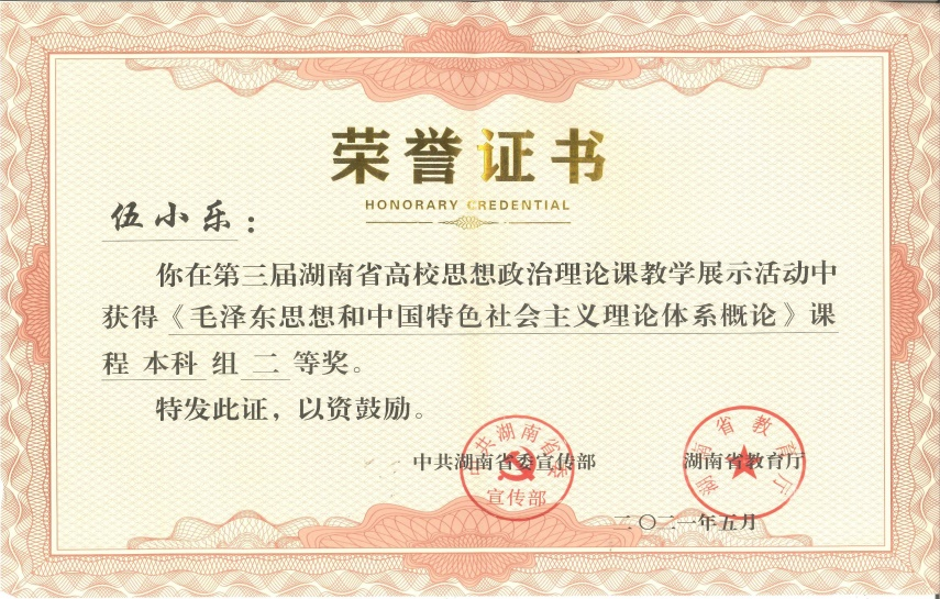 张冬毛:学院认真贯彻落实上级关于加强思政课建设的要求,始终坚持立德树人根本任务,坚守思政课堂教学主阵地,以提升人才培养质量为核心,以课程育人与实践育人为突破口,深入推进思政课教育教学改革,优化教学手段,改革教学方法,鼓励、引导学生自主学习,培养学生对思想政治理论的认知及团队合作精神,为学生成长成才奠定科学的思想基础。学院目前拥有2个省级教学团队平台,1门省级思政“金课”,4门校级思政“金课”。近三年获得湖南省思政课教师教学展示竞赛二等奖1项,校级一等奖4名;多名教师在湖南省高校微课大赛、微党课大赛获奖。指导学生获得湖南省高校“新思想进校园”学生微宣讲冠军,湖南省普通高校大学生思想政治理论课研究性学习展示竞赛一、二等奖各2项。