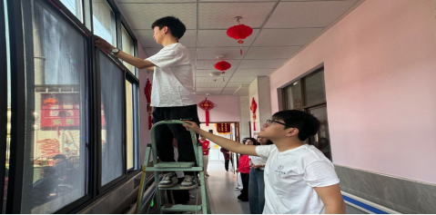 志愿者帮忙打扫养老院内的卫生