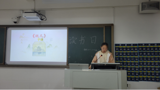 李蕊分享了《简爱》,为同学们介绍了书中所描述的性格坚强、朴实、刚柔并济、独立自主、积极进取的女性品质。
