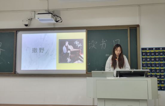接下来同学们接连上台,介绍自己喜欢的好书,并分享自己的阅读心得。李蕊等7位同学分享了《简爱》、《小王子》、《追风筝的人》、《山月记》、《霍乱时期的爱情》、《玩儿》、《撒野》等7部文学作品,通过介绍书籍中的亲情、友情和爱情故事,激发了同学们丰富的人生情感体验,产生积极的阅读引导作用。