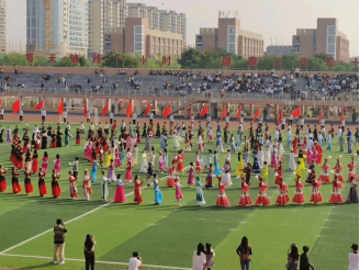 3日上午开幕式上,大型舞蹈节目《民族团结大联欢》惊艳全场。300人参演的队伍,我部就有130名余同学参加,他们身穿各自的民族服饰一起欢舞,展现了56个民族团结一家亲的和谐场面。