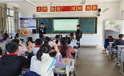 团队成员展示了当下农业工作者辛勤劳作的照片作为课堂引入,并提出问题,引发学生自主思考。接着,在学生们的踊跃回答之后,团队成员又介绍了农业的基本概念,使学生们意识到农业与我们的生活息息相关。在讲解完农业的发展历程之后,团队成员通过生动形象的图片和例子,讲述了智慧农业发展的意义。智慧农业不仅是现代农业发展的新理念、新模式和新业态,更是推动我国农业转型升级的重要途径。本次宣讲以时间为线索将农业分成四个阶段,从农业起步到智慧农业,通过课堂讲解使本次活动变得十分生动有趣,为学生提供智慧农业的基本知识和理论,引导学生对智慧农业的发展和应用产生兴趣和思考。双江小学的同学们也展示了勤奋好学的风貌,十分积极地配合团队成员并回答对应问题。