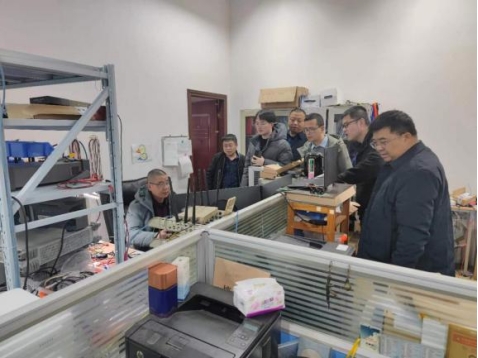赵中华带领大家参观了广西电子竞赛测评中心,双方就如何承办全国大学生电子设计竞赛、指导学生参加大学生电子设计竞赛以及将大学生电子设计竞赛所获成果融入到教学实践等问题进行了深入的交流讨论。