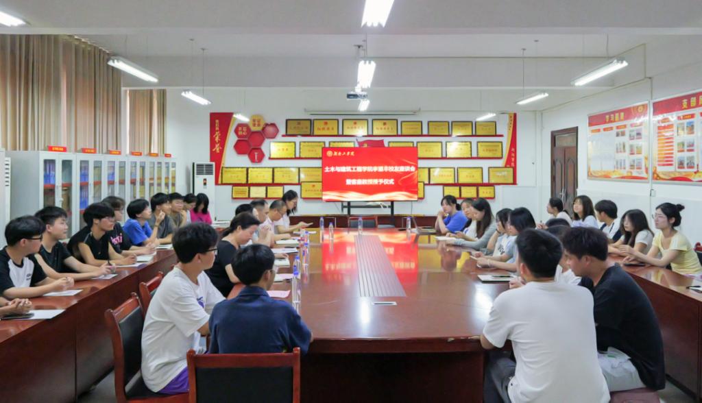 5月20日下午,土木与建筑工程学院在建工楼6201会议室举行李望丰校友座谈会暨客座教授授予仪式。学院党委书记黄卫华、院长游春华、副院长唐晓雪、副书记陈浩、学工办主任陈晔婷及团学干部60余人参加。