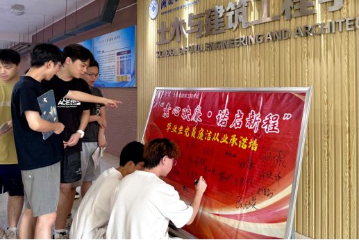在2025届毕业生即将离校之际,土木与建筑工程学院紧扣“立德树人”根本任务,以“土木菁华 感恩启航”为主题构建四维育人体系,通过“榜样领航、初心传承、纪律铸魂、廉心护航”四大育人工程,系统开展毕业生教育系列活动,为2025届毕业生送上蕴含家国情怀、专业精神、职业素养的“毕业大礼包”。