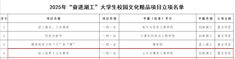 近日,学校团委开展五四评优暨“奋进湖工”校园文化精品项目立项答辩会。我院团委获“五四红旗团委”荣誉称号,校园文化精品项目获立5项,其中《砼心筑梦·土木菁华》“一院一品”项目获立校级重点项目,《精测水准,竞逐高程》等4个“一社一品”项目获立一般项目。我院团委在2024年、2025年连续两年获“红旗团委”称号,此次“一院一品”项目获重点支持,学院共青团工作取得新突破。