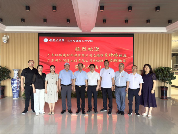 离开土木学院后,校友一行参加了在船山报告厅举行的吴钟鹤校友客座教授聘任仪式及广东红球建材科技有限公司、广东新江消防工程有限公司捐赠仪式,分别为母校捐赠款100万元和5万元。校党委书记曹执令,党委委员袁勤出席。学校各二级学院党委书记、校友联络中心、教育基金会全体成员及土木与建筑工程学院师生代表共同参与。