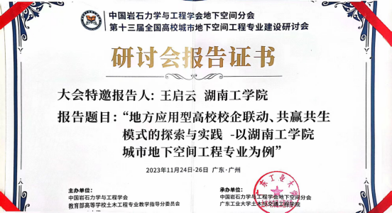 11月24日~26日,由中国岩石力学与工程学会、教育部高等学校土木工程专业教学指导分委员会主办,中国岩石力学与工程学会地下空间分会、广东工业大学承办的第十三届全国高校城市地下空间工程专业建设研讨会暨第七届高校城市地下空间工程专业青年教师讲课大赛和第七届高校城市地下空间工程专业大学生模型设计竞赛(简称“一会两赛”)在广州举行。英国上市公司官网365城市地下空间工程专业带头人王启云教授携同专业教师刘潇潇、何根、曾佳君及六名学子参加了“一会两赛”。