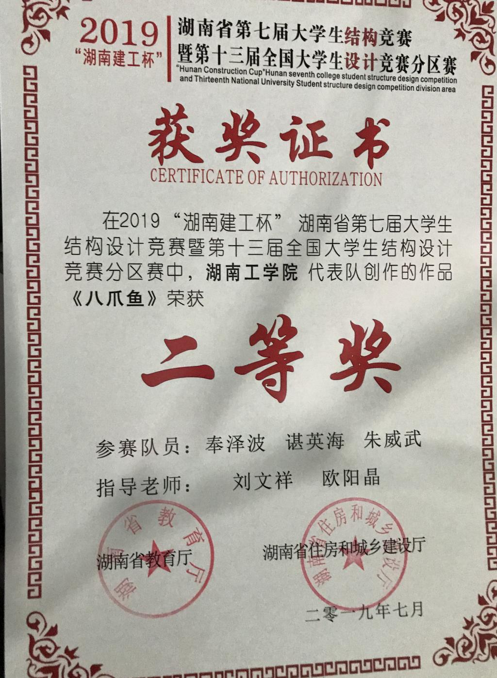 湖南省第七届大学生结构设计竞赛