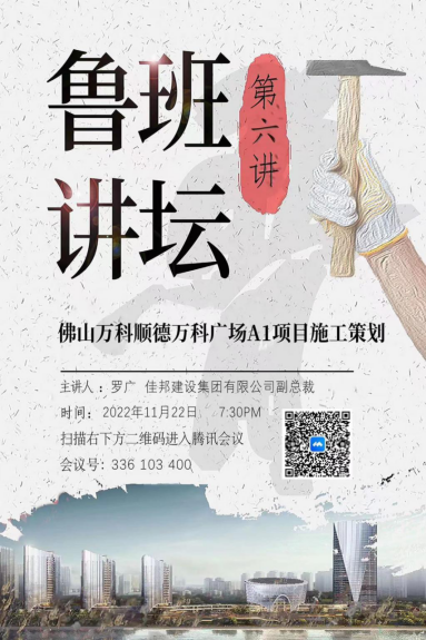 为进一步提高就业实践教学质量,培养高素质应用型人才,土木与建筑工程学院于11月22日晚上7点30举行了“线上鲁班讲坛”第六讲开讲。本次主讲嘉宾为土木学院优秀校友佳邦建设集团有限公司副总裁罗广,主讲题目为“佛山万科顺德万科广场A1项目施工策划”。土木工程教研室部分教师、土木工程专业19级学生共计200余人在线聆听了本次讲座,讲座由土木与建筑工程学院副院长唐晓雪主持。