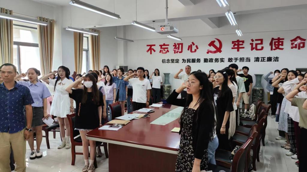 学工办主任张伟平带领毕业生党员重温了入党誓词,以提醒毕业生党员毕业后无论身在何处,都应铭记入党时的初心、宣誓时的信仰。铿锵有力的入党誓词,寄托着母校对毕业生党员的深情与期待,也承载着外国语学院毕业生党员对党忠诚、永不叛党的坚定信念与执着追求。
