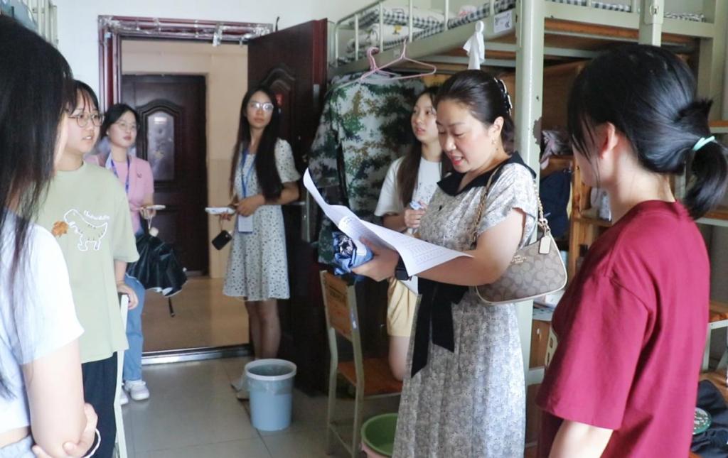 新生入住宿舍后,为加强与新生之间的交流互动,了解他们的需求与困惑,刘斌、周艳红、全体辅导员及新生班主任深入2023级新生宿舍,实地走访查看B5、B6宿舍卫生情况、床位分布,真情慰问学生,展示亲切关怀。同时,为提高新生安全意识,组织全体新生开展安全教育,嘱咐大家要树立反诈意识,注意寝室防火用电安全等事项,鼓励同学们养成良好的生活习惯,尽快适应大学生活,共同营造良好的宿舍学习氛围与相处环境。老师们热情的笑容、亲切的话语,让新生感受到了湖工校园如家般的温暖。