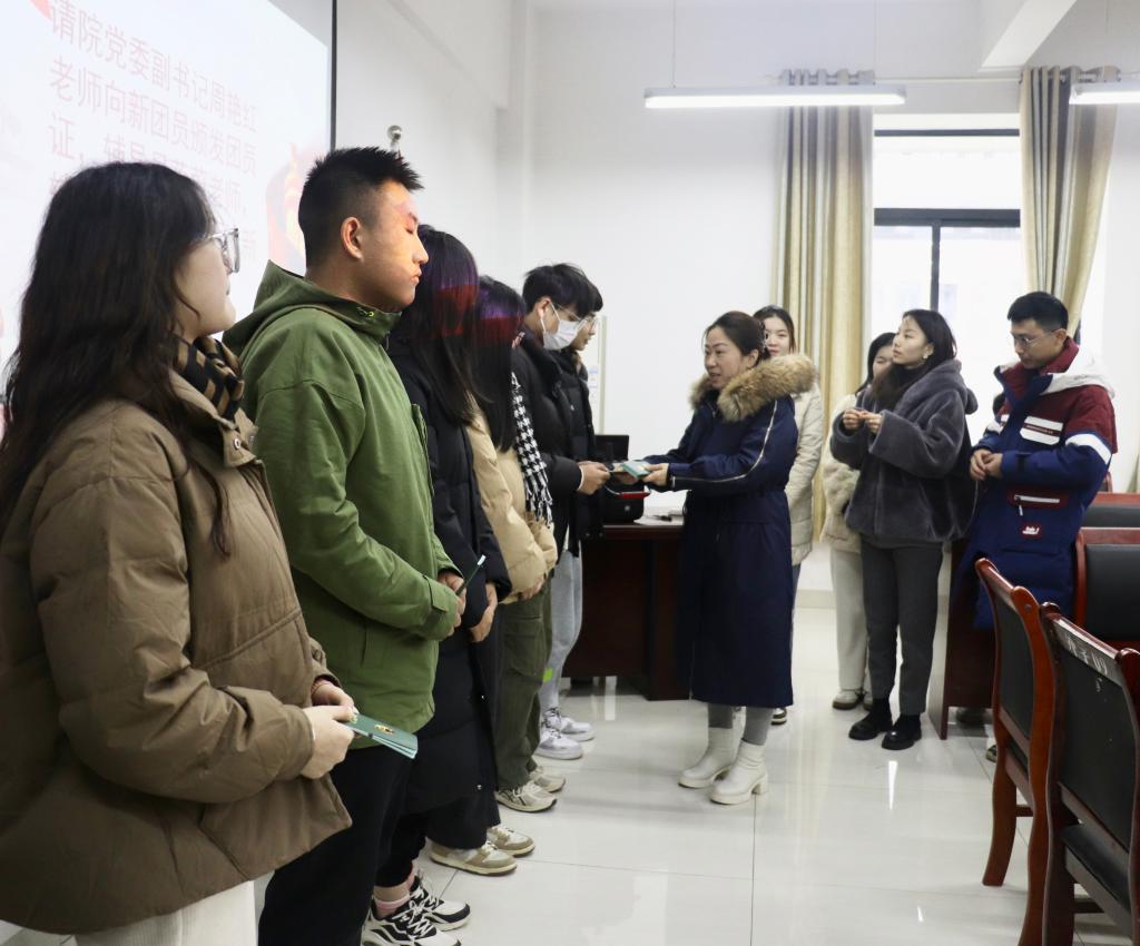 为深入贯彻落实习近平总书记关于加强新时代团员队伍先进性建设的重要指示,持续加强发展团员调控,进一步增强广大团员青年的组织意识和爱国意识,推动共青团事业发展,依据《关于做好2023年下半年新团员发展工作的通知》要求,外国语学院于12月18日在外语楼317举行2023年下半年新团员入团宣誓仪式,党委副书记周艳红,辅导员蒋蔚、李一平,院团委团员教育发展中心代表参加此次宣誓仪式。