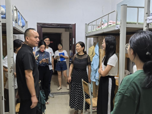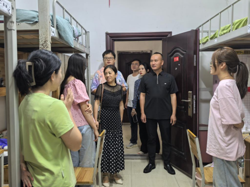 为了解2024级新生入校后的情况,9月8日晚,我院党委书记刘斌、院长谭晓丽、党委副书记胡忠龙及全体新生班主任、辅导员前往宿舍看望新同学。