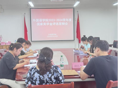 为落实立德树人根本任务,加强学院学风建设,发挥榜样示范引领作用,激励大学生全面发展。9月29日下午,外国语学院2023-2024学年度国家奖学金评选答辩会在317会议室举办,院长谭晓丽、党委副书记胡忠龙、全体辅导员、各班班主任、学生代表担任此次答辩评委。