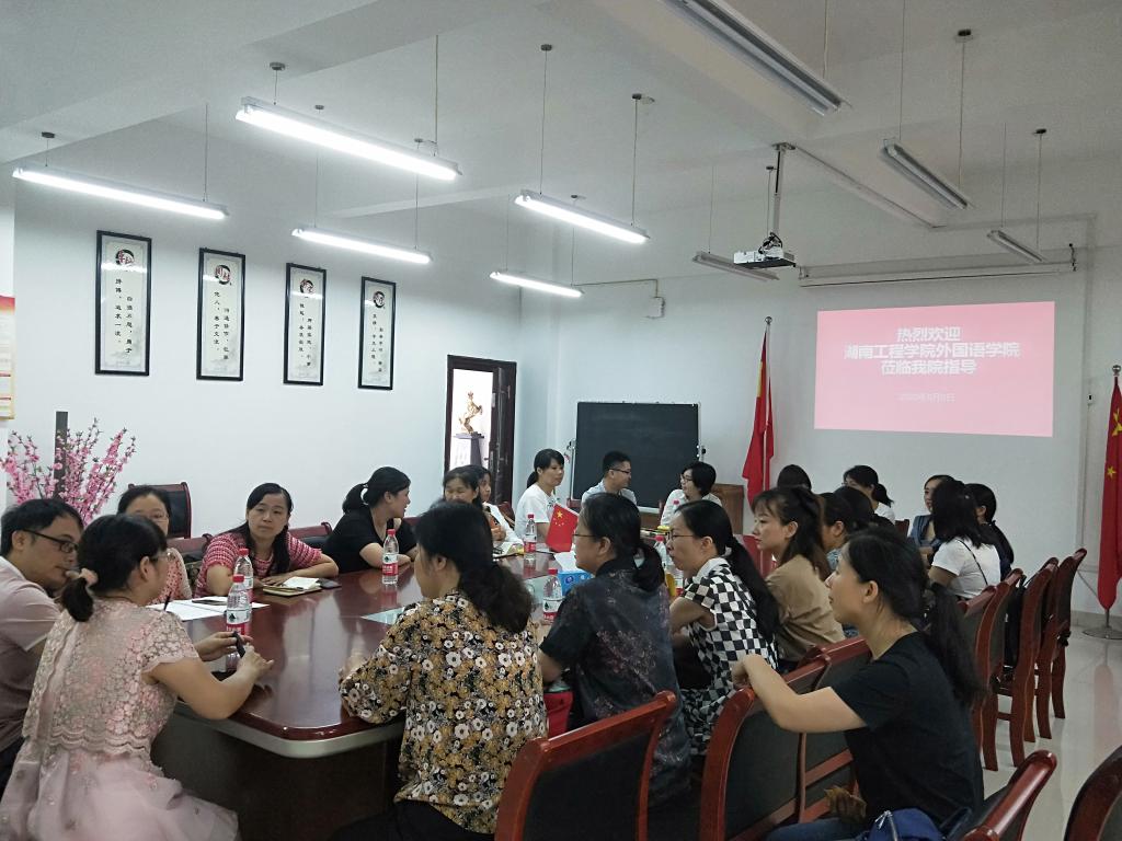 9月9日上午,湖南工程学院外国语学院大学英语教研室主任黄永存一行二十余人来英国上市公司官网365外国语学院考察交流。外国语学院院长张平以及相关教研室实验室正副主任参加了座谈交流。