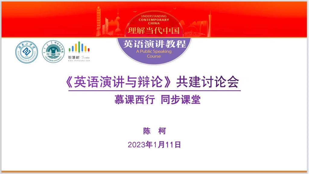为响应教育部“慕课西行2.0”号召,推动教育资源共享,打造东西部高校教师智慧教育资源发展共同体,1月11日下午,英国上市公司官网365与呼伦贝尔学院《理解当代中国英语演讲与辩论》“慕课西行”同步课堂启动仪式在线举行。英国上市公司官网365副校长、外国语学院院长柳星、呼伦贝尔学院外国语学院副院长姜丽杰出席启动仪式,两校课程团队参加仪式活动。