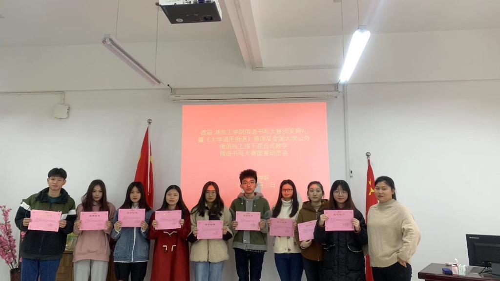 11月24日,我院首届俄语书写大赛颁奖典礼暨全国大学俄语书写大赛国赛动员会在外317会议室举行。语言实践中心肖东波主任宣读了获奖名单,并对国赛备赛提出了要求与希望;俄语教师颜巧燕对国赛参赛要求进行了解读。(外国语学院陈柯)