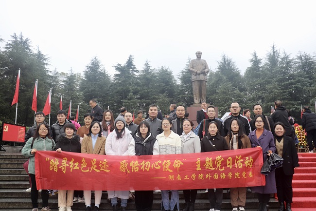 为加强革命传统教育,提高党员党性,引导广大教师党员不忘初心、牢记使命,勇于担当、廉洁奉公,11月11日,外国语学院党委组织全体教师党员赴韶山开展“踏寻红色足迹,感悟初心使命”主题党日活动。