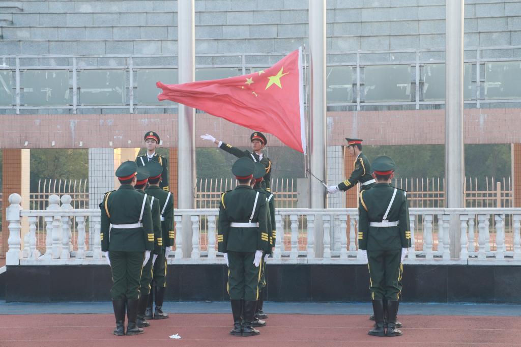 升旗仪式在英语2402班阙慧敏领读宪法晨读内容中结束。(图文/外国语学院 一审/蒋蔚 二审/胡忠龙 三审/刘斌)