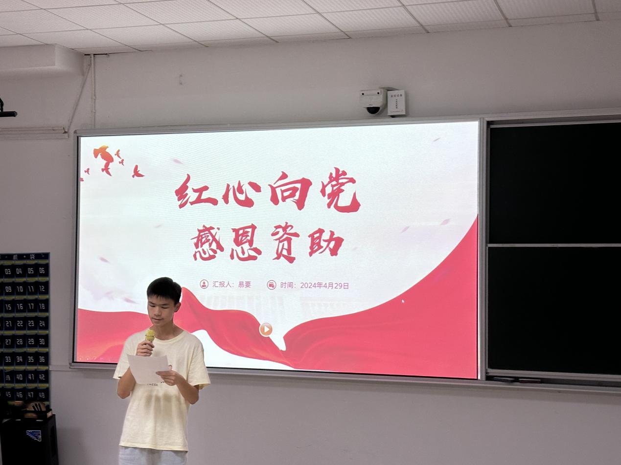 4月29日晚,外国语学院在外612举行“红心向党,感恩资助”主题宣讲会。会议由辅导员彭方凯主持,英语2302班学生易要作主题宣讲,全院家庭经济困难学生参会。