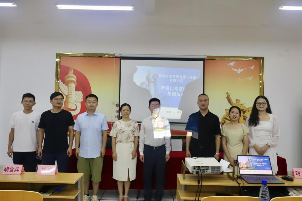 911日,于外603,我院举行了考研自修室启动暨黑马科教控股集团自修室物资捐赠仪式。黑马科教控股集团董事长胡含兵、副总章宇佳、校区负责人刘涛、彭婷、杨帅,院党委书记刘斌、院长谭晓丽、党委副书记胡忠龙、全体辅导员及学生代表参加捐赠仪式。