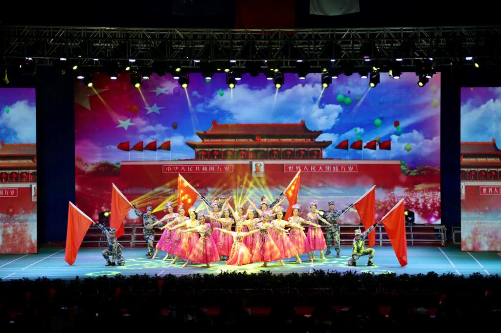 12月6日晚七点半,庆祝中华人民共和国成立70周年暨元旦文艺汇演在校体育馆举行。全体校领导、副处级以上干部、部分离退休老领导、老教师、应邀回校的优秀校友代表、师生代表3000余人现场观看,晚会进行了全程网络实时直播。