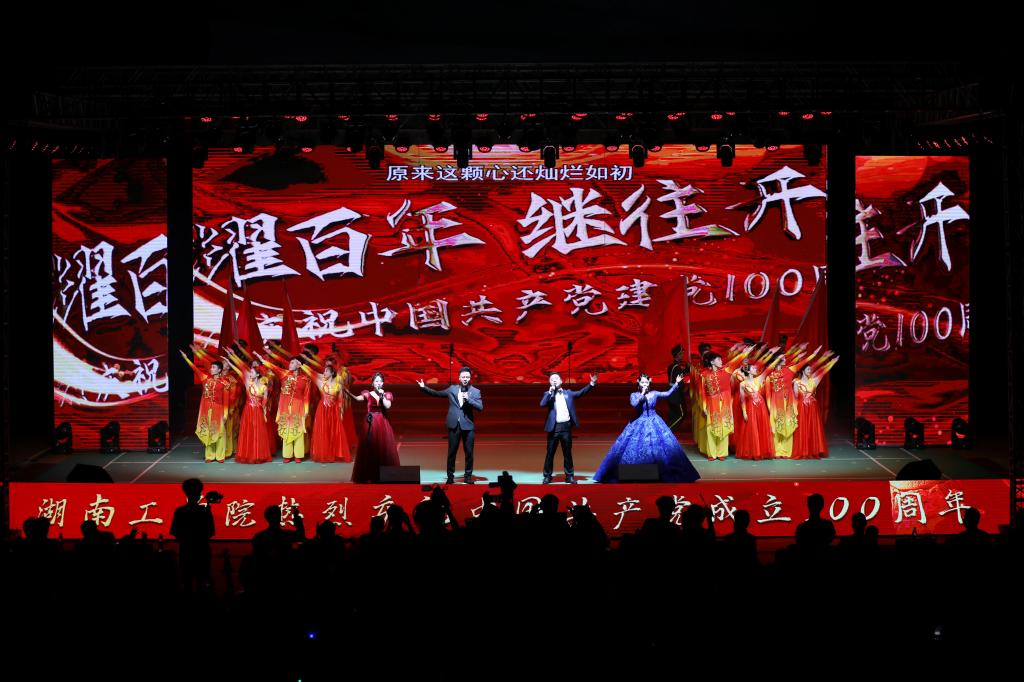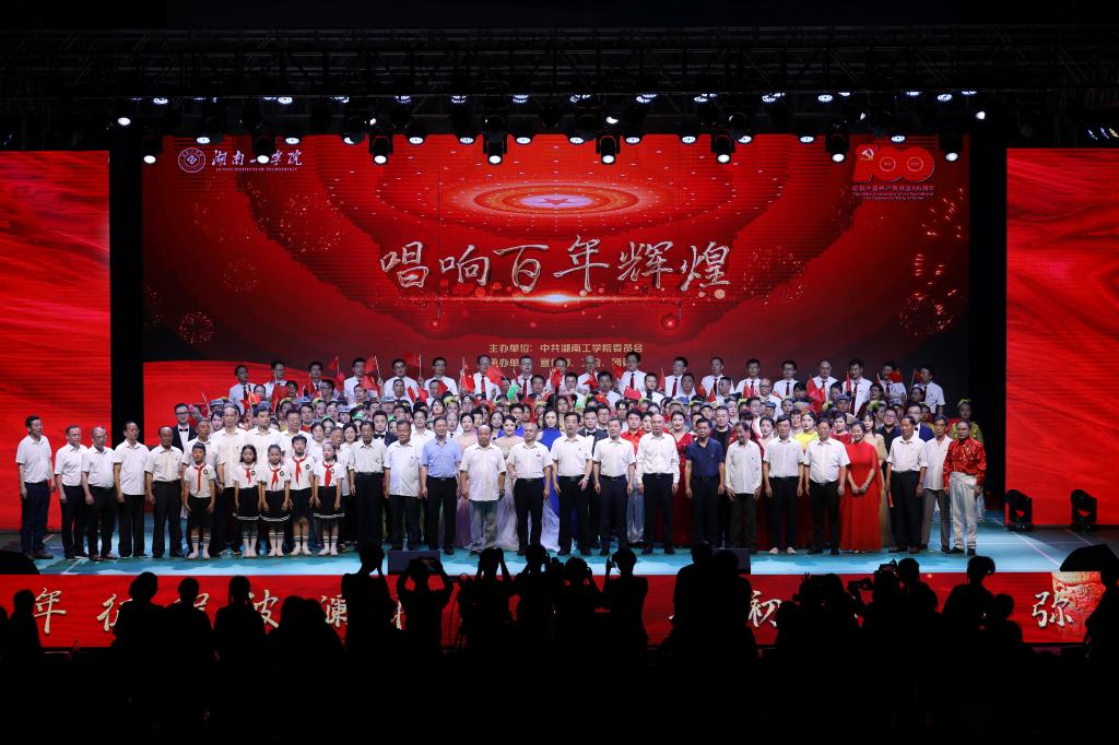 放歌百年,唱响辉煌。7月1日晚7点30分,学校庆祝建党100周年 “唱响百年辉煌”主题晚会在校体育馆隆重举行,以合唱、朗诵、歌舞等节目形式庆祝中国共产党百年华诞,歌颂伟大的党、伟大的祖国,讴歌新中国辉煌巨变,激励广大师生不忘初心、牢记使命,积极投身社会主义现代化建设,推进中华民族伟大复兴历史伟业,凝心聚力推动学校事业高质量快速发展,建设美丽幸福新湖工。全体校领导、副处级以上干部、部分离退休老领导、部分在衡校友代表、师生代表2500余人出席晚会,5万余名湖工师生、校友、学生家长通过网络直播共享这场文化盛宴。
