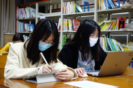 徐星帆(左一)、彭雨菡在学校图书馆学习