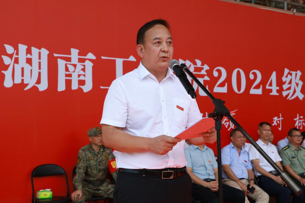 在开学典礼上,校长曾广胜在讲话中回顾了学校的办学历史和丰硕成果,并对新生们寄予厚望。他指出,湖工4788名新生每个人都有专属自己的优秀和精彩,今天大家将在这里开启人生的新旅程。针对大学生活应该如何过、接下来的路应该怎么走,曾广胜提出三点希望,一要告别过去,以从零开始的心态开启新的人生旅程;二要规划现在,让明确的目标指引每一个日夜;三要蓄力未来,把个人奋斗目标融入国家发展蓝图,以青春之我、奋斗之我,书写出不负时代、不负历史的青春答卷。