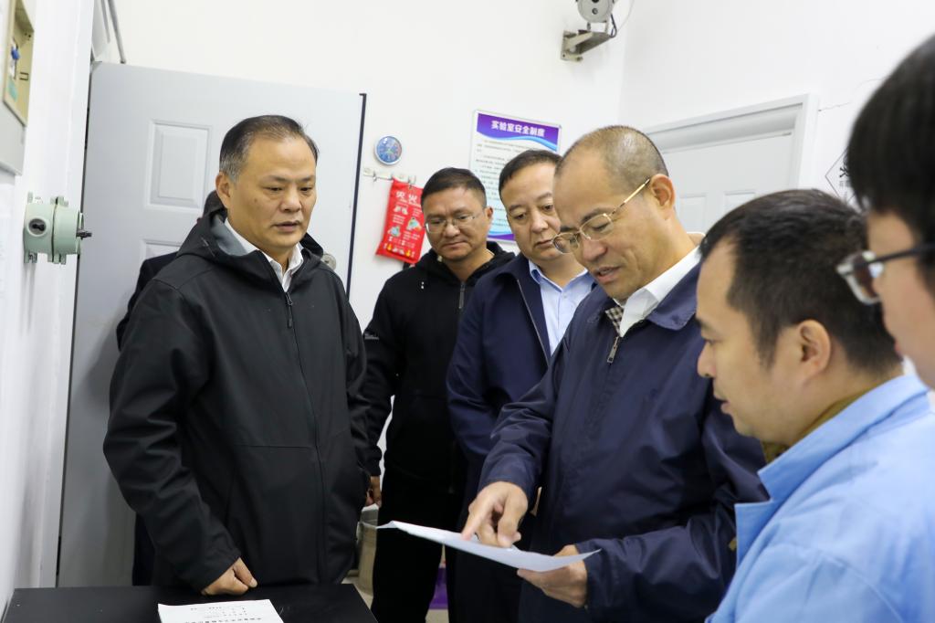 陈礼洋一行实地察看了校园环境,深入学校监控指挥中心、危化品实验室等重点区域,详细了解安全隐患排查和安全措施落实情况。在检查过程中,校党委副书记、校长曾广胜重点介绍了学校在保障校园安全稳定方面的工作举措,党委委员、副校长谢柯汇报了学校在南校区土地管理中协调周边村民关系方面的困难。