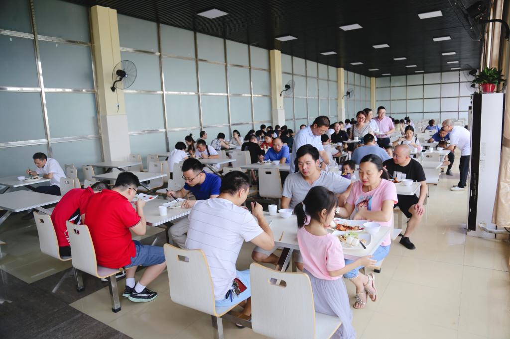 校长罗建华、副校长刘俊学与教职工们一道共享自助餐
