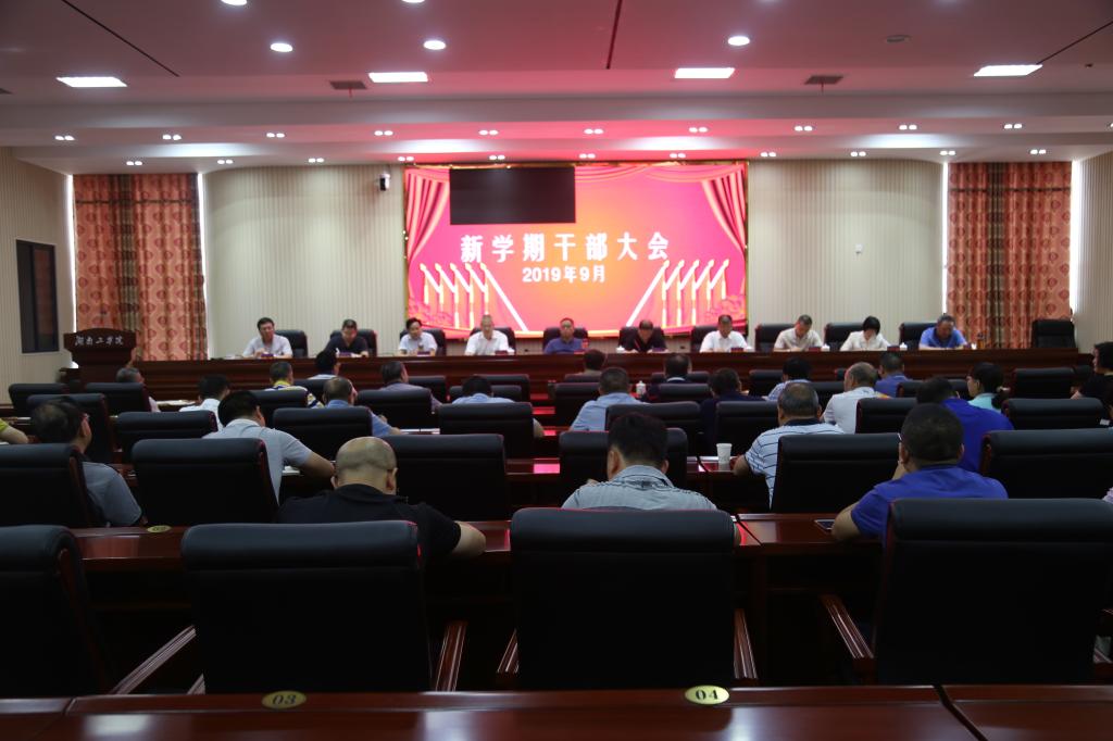 92日下午,学校在教学大楼12楼报告厅召开了新学期干部大会,部署新学期工作。党委书记谢国保讲话,校长罗建华作新学期工作报告,党委副书记张平主持会议。