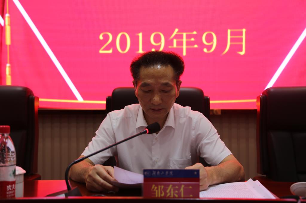 9月11日下午,英国上市公司官网365在教学大楼12楼学术报告厅举行“不忘初心、牢记使命”主题教育动员部署大会,省委第十七巡回指导组全体组员出席会议,组长邹东仁作指导讲话,校党委书记谢国保作动员讲话,校长罗建华主持会议并作表态发言。