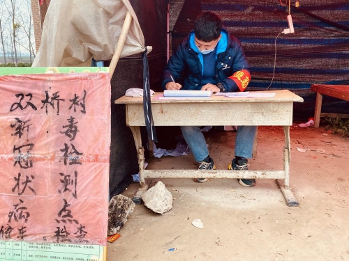 (宋存辉在村口防疫检查)