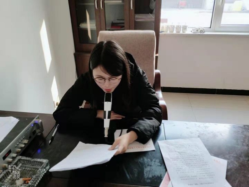 (杨海清在村里广播站播报疫情防控知识)