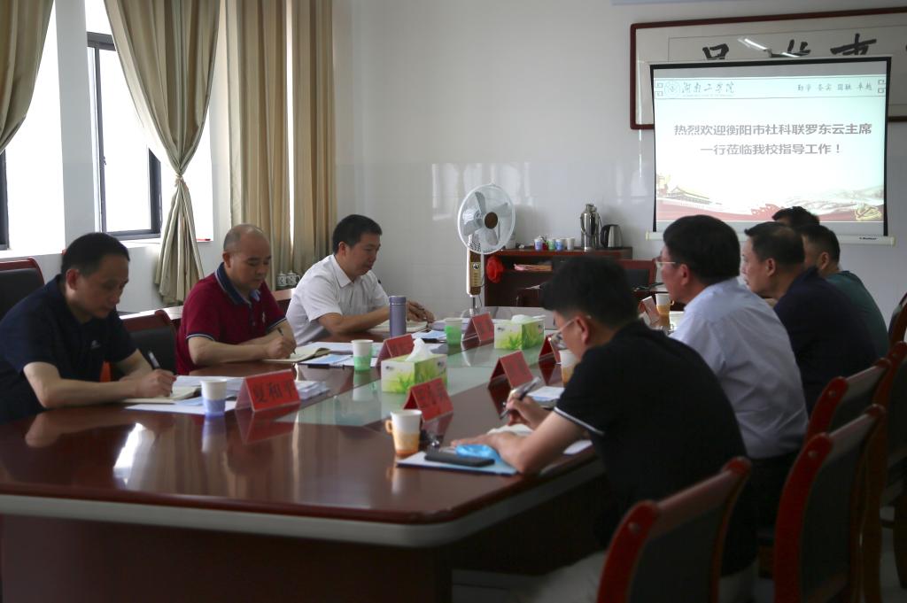 5月20日上午,衡阳市社科联主席罗东云一行3人来英国上市公司官网365考察衡阳市工业文化科普基地建设工作。汇报会在社科楼318室举行,校长罗建华致欢迎词、副校长胡穗作申报汇报。汇报会由马克思主义学院院长肖中云主持。