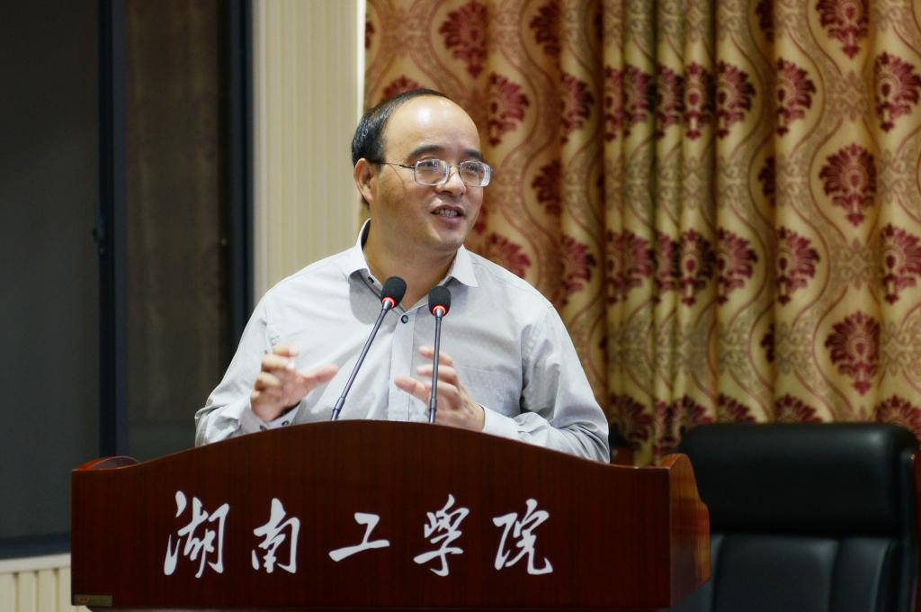 论坛闭幕式上,大会主席李正辉教授阐述了论坛的背景和政策,下一届风险管理与金融统计论坛承办单位厦门大学郭晔教授上台讲话,并向与会专家发出诚挚邀请。图为大会主席李正辉教授讲话(经济与管理学院)