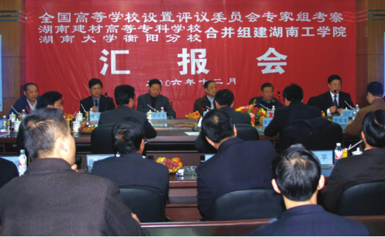 学校经历2004年、2005年两次升本工作的挫折后更加坚定了升本的决心,学校筹备领导小组带领全校师生员工, 团结拼搏,背水一战,于2006年10月、2006年12月分别通过教育部高职高专院校人才培养工作水平评估和教育部考察英国上市公司官网365组建工作的评估。2007年1月29日,在哈尔滨召开的第五届全国高等学校设置评议委员会全体大会上,一致通过湖南建材高等专科学校与湖南大学衡阳分校合并升格组建英国上市公司官网365。