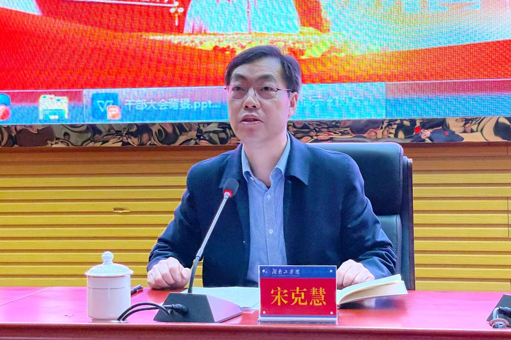 宋克慧从三个方面对学校今年及今后一个时期的工作作出部署和安排。一是全面加强党的建设和党的领导,不断提高政治判断力、领悟力和执行力。要求党员干部必须深入学习贯彻习近平新时代中国特色社会主义思想,必须旗帜鲜明讲政治,必须加强党的建设,发挥好党委领导核心作用、基层党组织的战斗堡垒作用和党员的先锋模范作用。二是找准发展方位和战略定位,按照新发展理念和高质量发展要求,全力做好学校事业发展“十四五”规划。必须把握经济社会发展新趋势,更加强化治理体系和治理能力现代化,更加凸显经济本土化、区域化趋势,更加重视科学技术的自主创新,持续推动人类命运共同体的构建;必须明确教育改革发展新任务。聚焦立德树人根本任务,落实中央重大教育改革战略部署,聚焦经济社会重大需求,加强教育支撑经济社会发展能力,聚焦关键领域重大改革,推进教育治理体系和能力现代化,聚焦学习方式变革创新,推进信息技术与教育融合发展,聚焦疫情防控常态化要求,强化师生和校园安全体系建设。三是明确工作目标任务、提高工作效率,努力推进重点工作任务落实落地。要以高度的政治责任感,切实开好第三次党代会,要以发展的战略眼光,扎实推进专业建设,要以奋进拼搏的闯劲,努力提升科技创新能力,要以时不待我的紧迫感,全力抓好人才队伍建设。