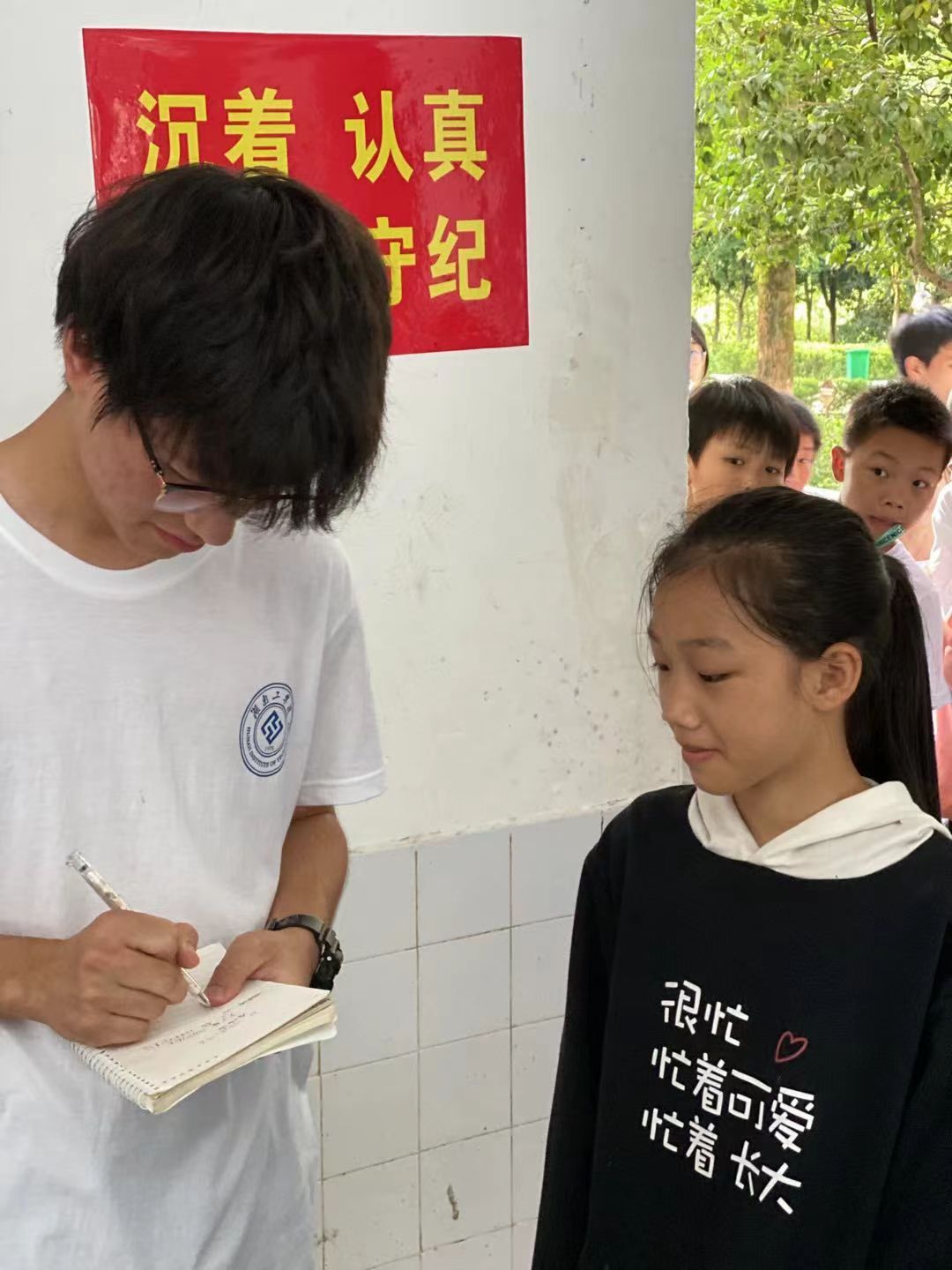 几天的实践结束后,得知实践队员们要离开的消息,清早团队寝室门外早已排起长龙,孩子们拿着心爱的笔记本、零食相赠,找队员们签名并合影留念,同时再次确认彼此的联系方式,小小信笺架起了彼此间沟通的桥梁。